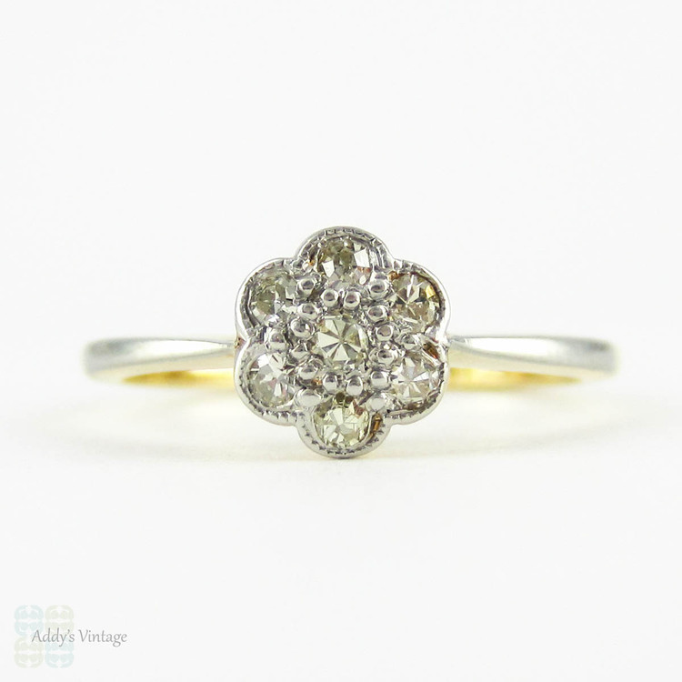 Antique Diamond Engagement Ring, Daisy Flower Shaped Diamond Ring, Floral Cluster Ring in 18 Carat Gold, Circa 1900s.